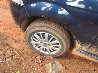 O veículo deslizou e não conseguiu subir o morro. |